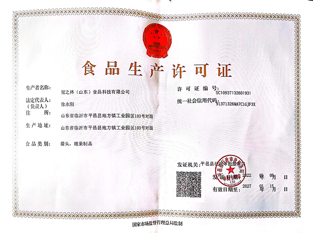 Detailed Table of Food Production License Certificate