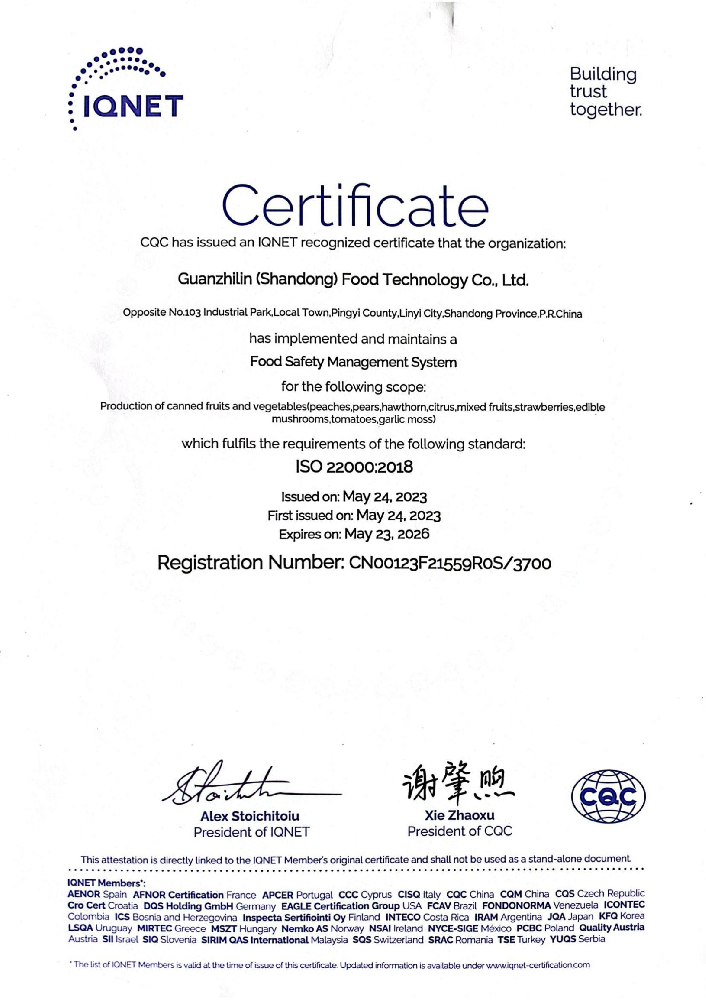 Certification of Food Safety Management System